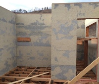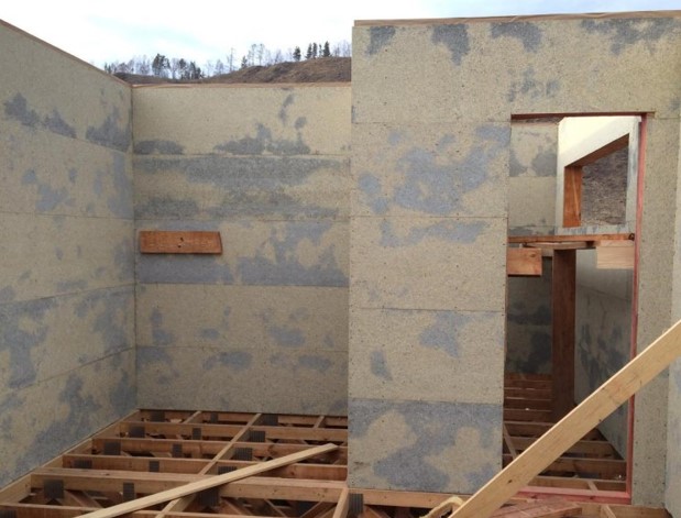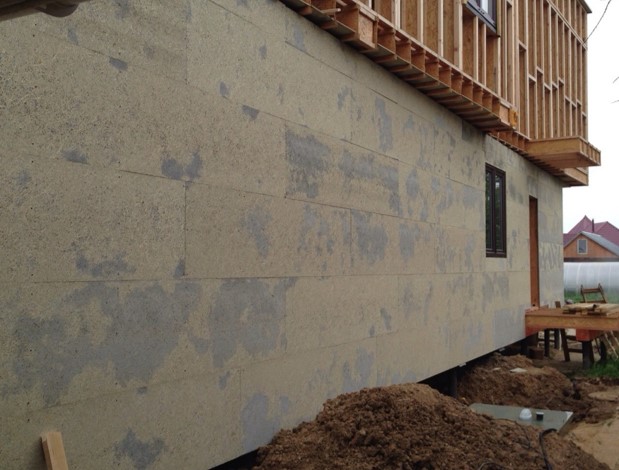 Фибролитовые плиты с низкой плотностью 400 кг/м3 и толщиной 25 мм применяют для внутренней облицовки стен. Благодаря своей структуре плита является отличным шумопоглотителем и подходит для обшивки стен в кинотеатрах и звукозаписывающих студиях. На поверхность фибролитовых плит наносят штукатурку и краску, цвет заказчик может выбрать по системе RAL или любой другой. Белый цемент подходит под покраску в светлые цвета.